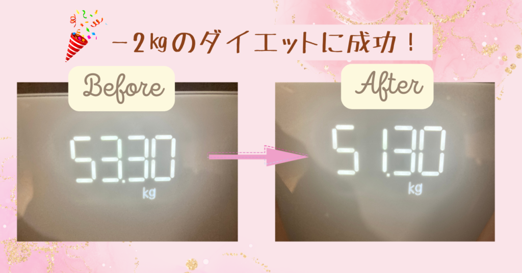 前回のジュースタイプでは−2kgだったため、数字だけを見ると大きな差はありません。