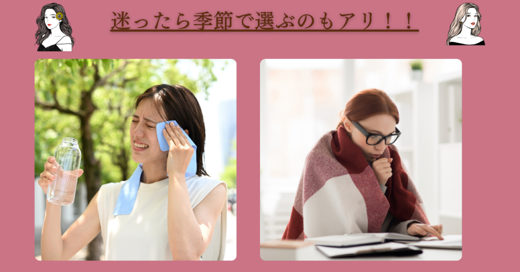 向いている季節春~夏の暑い時期   秋〜冬の寒い時期
