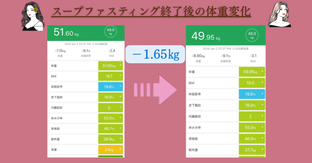 今回のスープタイプ3DAYSファスティングでも-1.65㎏の減量に成功!