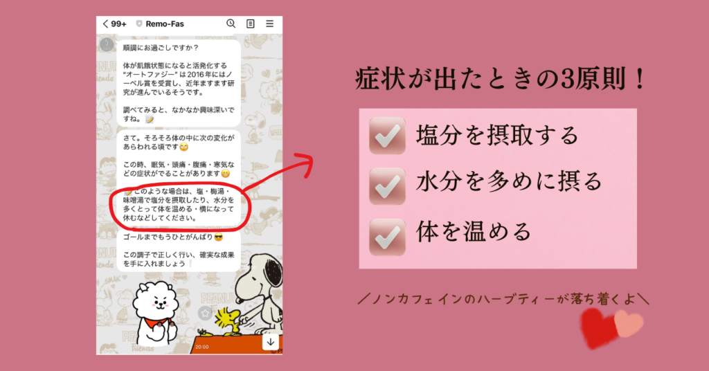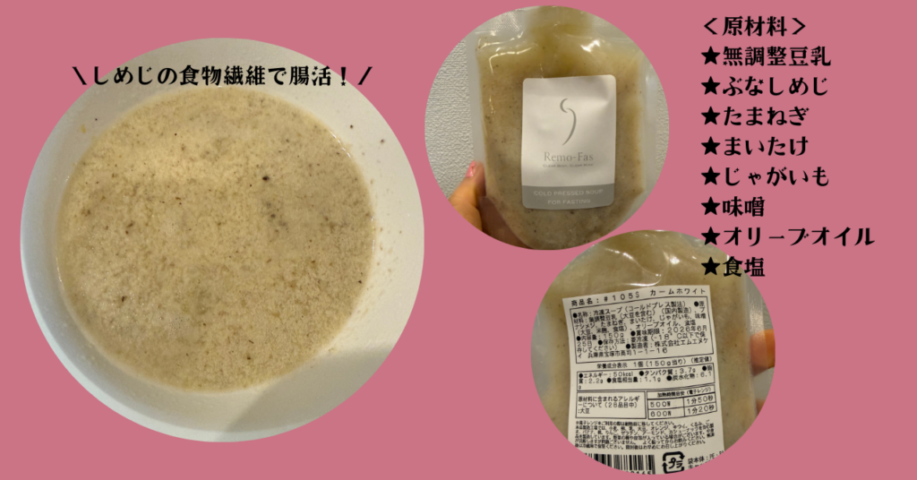 でも、今回スープタイプのRemo-Fas(リモファス)3DAYSファスティングを初めて体験してみて、温かいスープがあるだけでも、心と体のラクさが違うと感じました。