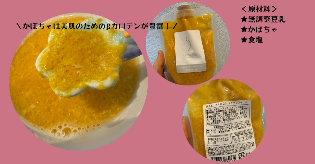 アクティブイエローも無調整豆乳ベースですが、お野菜はなんとかぼちゃだけというシンプルなスープ。