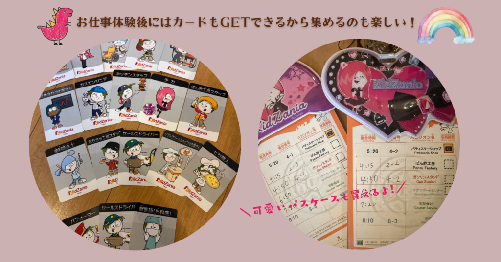 また、キッザニアではお仕事の体験すると、体験した証としてカードがもらえるのも特徴です。