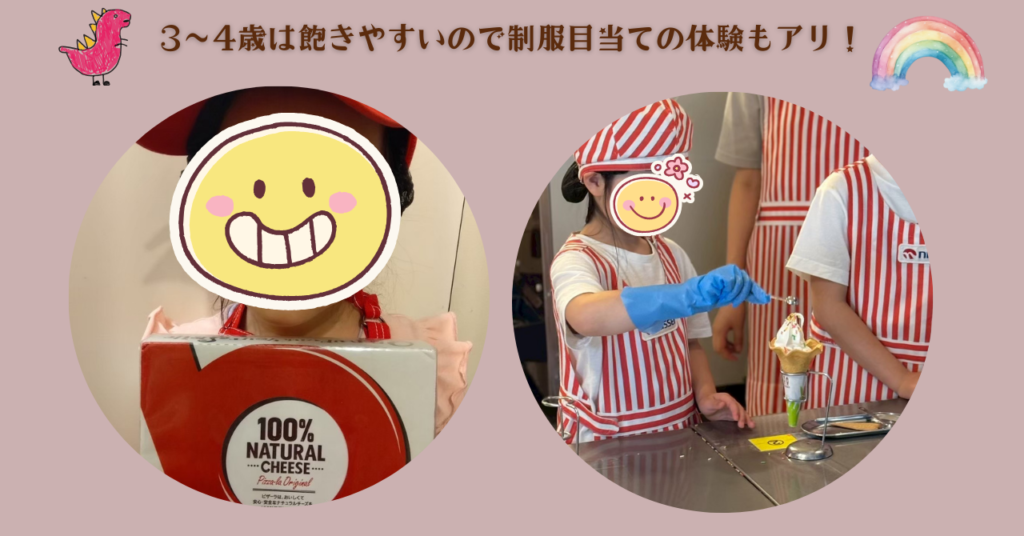 - 3~4歳:楽しめるけれど疲れるのも早く、体験できるお仕事はやや限られる