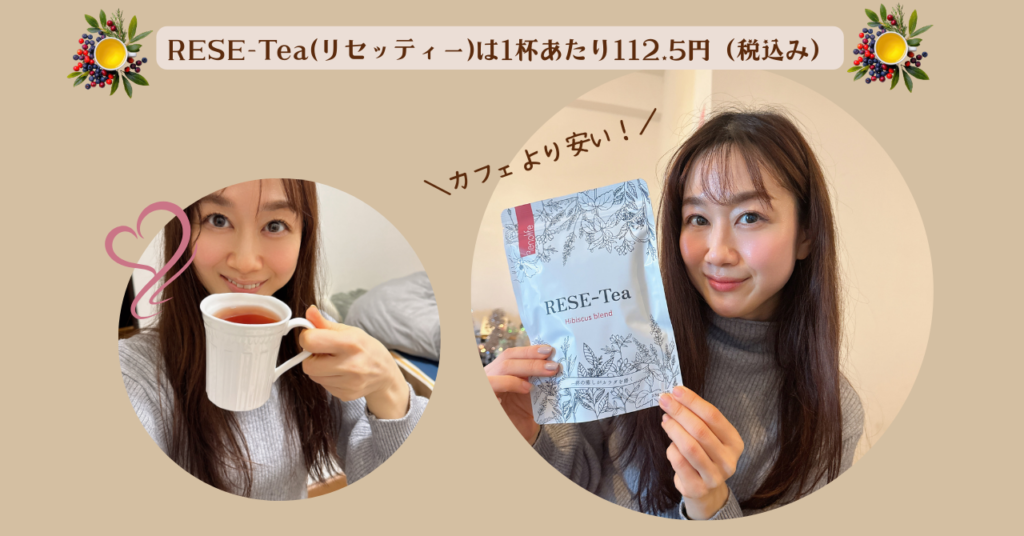 RESE-Tea(リセッティー)は、お湯を注いで5分という手軽さで、1杯あたり約113円(税込)と、毎日の生活に無理なく続けやすい健康美容ハーブティーです。